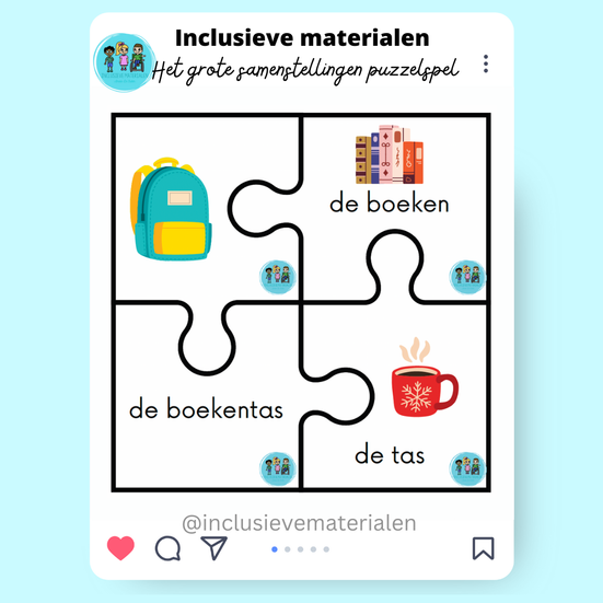 In dit bestand vind je een leuk spelletje terug om de samenstellingen in te oefenen in de klas. Het bestand kan je perfect gebruiken als instap of slot van een lesje rond samenstellingen of je kan het gebruiken in het hoekenwerk of in de kieskast. Je kan het trouwens dubbelzijdig afdrukken. Veel plezier met dit gratis bestandje!