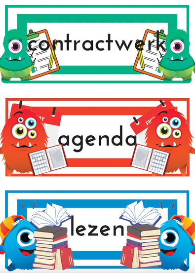 - afbeeldingen om bv. op de klasdeur te hangen met de namen van de klas